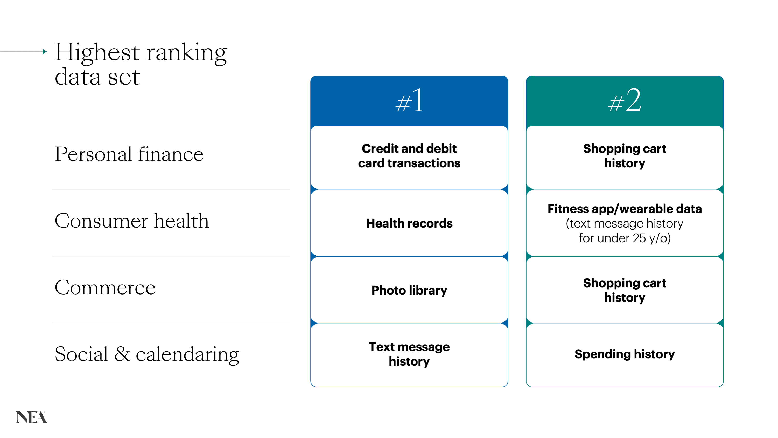 Leverage the data sources that matter most. Shopping history, text conversations, notes, and photos often reflect more than trackers or dashboards.