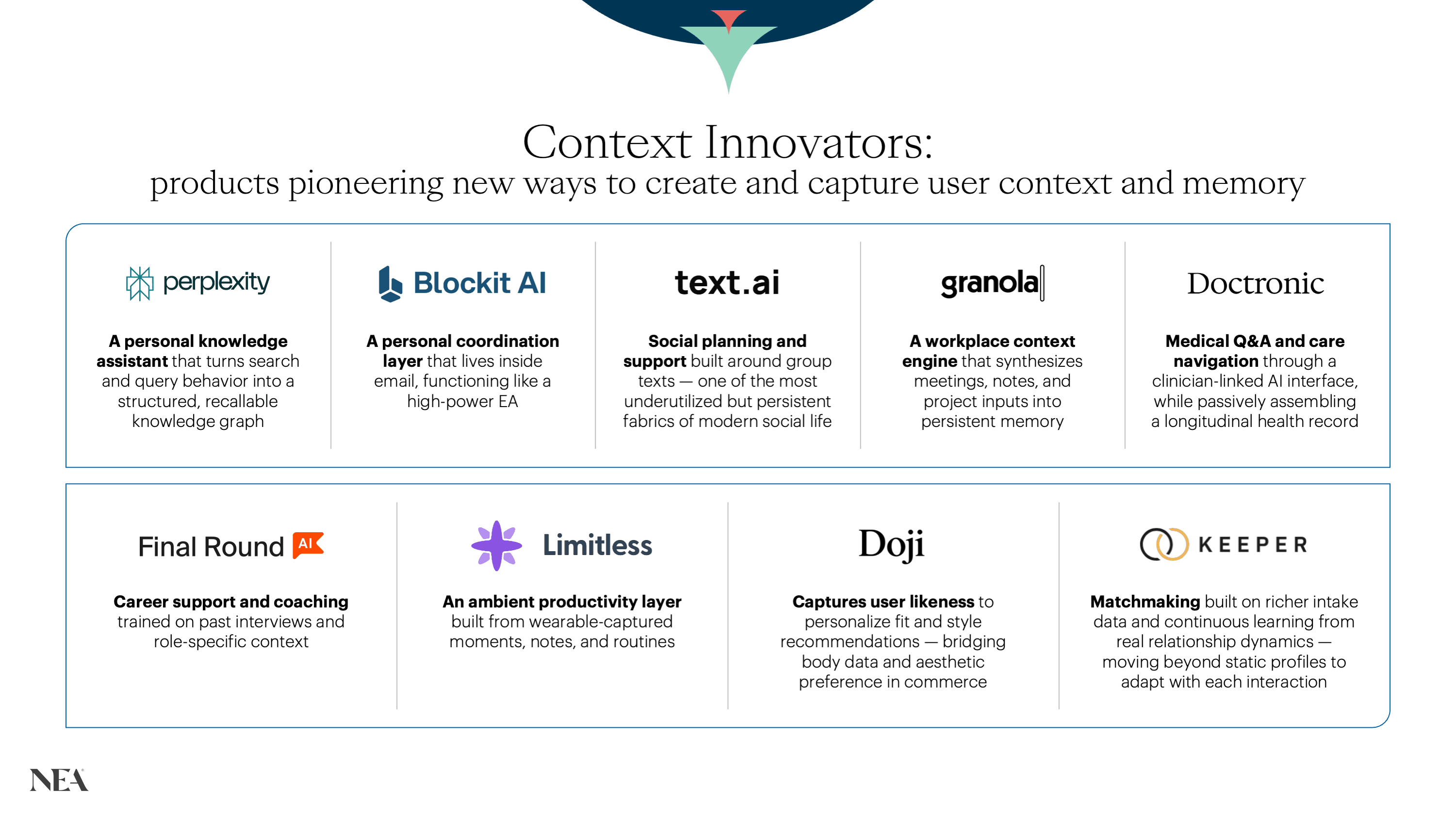 Two years into the AI platform shift, consumer applications are leading global adoption. ChatGPT, Claude, Perplexity, and others have introduced AI to over a billion users and are quickly becoming the default interface layer for digital life. As these platforms take on more tasks, raw intelligence is no longer enough. The difference between a helpful assistant and a generic one is context: an understanding of the user’s routines, preferences, relationships, and history.