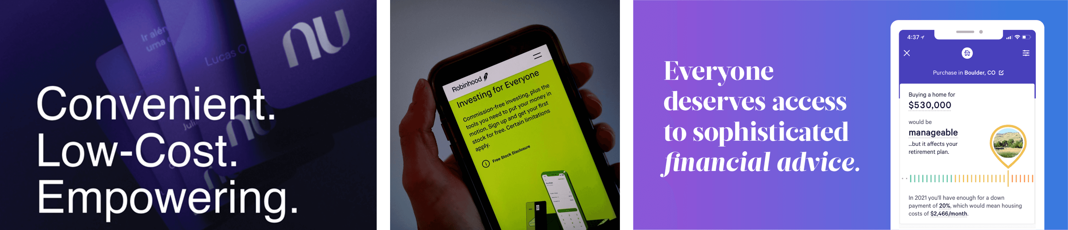 Marketing from platforms Robinhood, Nu, and Wealthfront highlight their ‘democratic’ mission [3-5]
